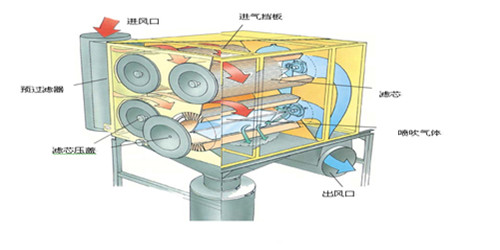 脈沖濾筒除塵器也是利用電磁脈沖閥進行噴吹清灰的,只是濾筒除塵器的清灰過濾元件是濾筒而不是布袋,但它們的清灰原理是一樣的。濾筒除塵器和 布袋器相比有著自己獨特優勢,脈沖濾筒除塵器凈化效率高、外形尺寸小、過濾面積大、過濾效果好、壓力損失小、濾筒使用壽命長、安裝維修快捷方便、可連續使用等特點。脈沖濾筒除塵器廣泛適用于食品、制藥、飼料、冶金、建材、水泥、機械、化工、電力、輕工行業的含塵氣體的凈化與粉塵物料的回收。