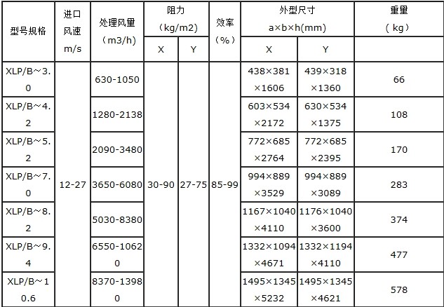 XLP/B型旋風(fēng)除塵器的工作原理與C型旋風(fēng)除塵器類似,即含塵煙氣進(jìn)入除塵器后,氣體獲得旋轉(zhuǎn)運(yùn)動(dòng)的同時(shí),上下分開形成雙旋渦運(yùn)動(dòng),灰粒在排氣管底部即雙旋渦的分界處產(chǎn)生強(qiáng)烈的分離作用。較細(xì)較輕的灰粒,由上旋渦氣流帶往上部,在頂蓋下面形成強(qiáng)烈旋轉(zhuǎn)的灰環(huán),產(chǎn)生灰粒的集聚,并被從特設(shè)的灰塵隔離室上部洞口引出,經(jīng)過(guò)灰塵隔離室的下部螺旋槽,從除塵器外壁回風(fēng)口切向引入除塵器,筒體下部與內(nèi)部氣流匯合,灰粒被分離而落入灰斗。另一部分較粗較重的灰粒,則在下旋渦氣流帶動(dòng)下,沿除塵器下段, XLP-B型旋風(fēng)除塵器技術(shù)參數(shù)