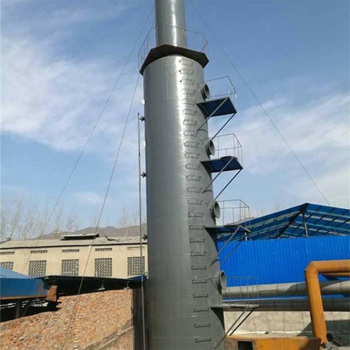 3、脫硫塔是一種側進頂出的沖擊式除塵脫硫器,使煙氣直接沖擊水面,將煙氣中的污染性氣體經過堿液洗滌,使其發生中和反應,達到煙氣凈化目的,脫硫吸收效率高,節水并減少污染,操作維修方便,運行費用低。