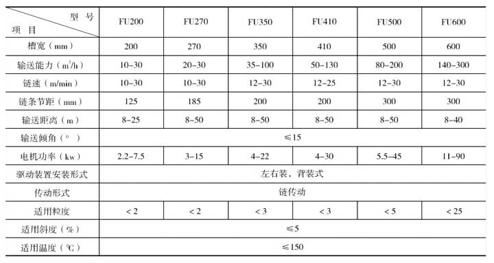 三、FU系列刮板輸送機(jī)性能參數(shù)